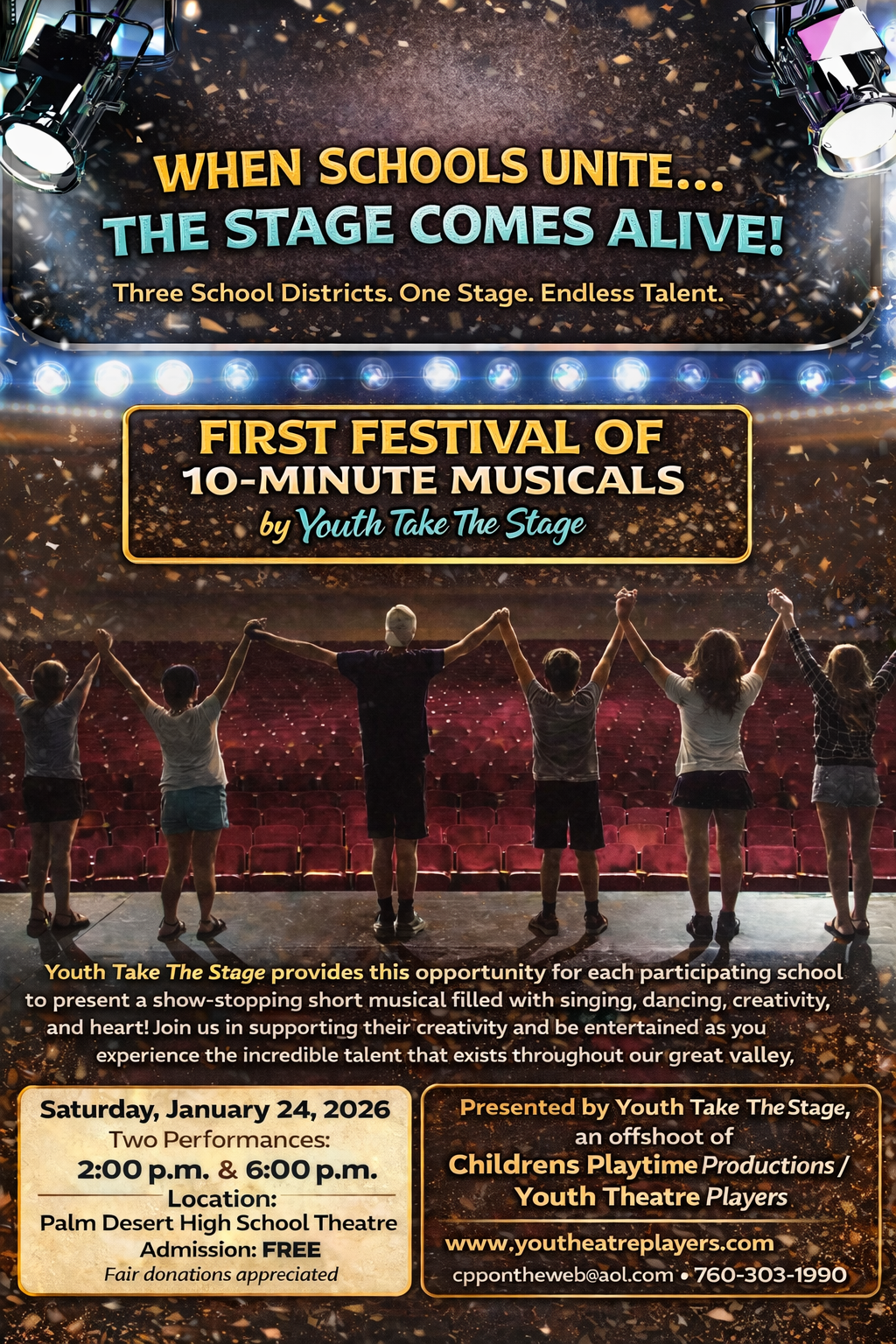 I am having so much fun doing theater and learning with CPP/Youtheatre Players. I Love it. Chuck and Richard and everyone else is so nice. Freddy - Age 10